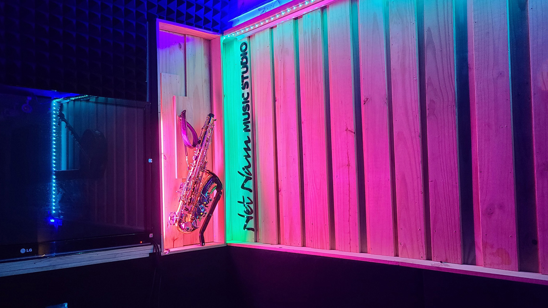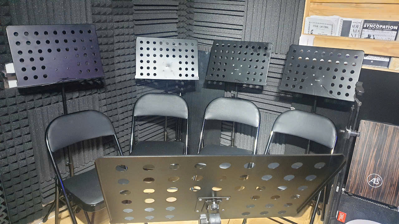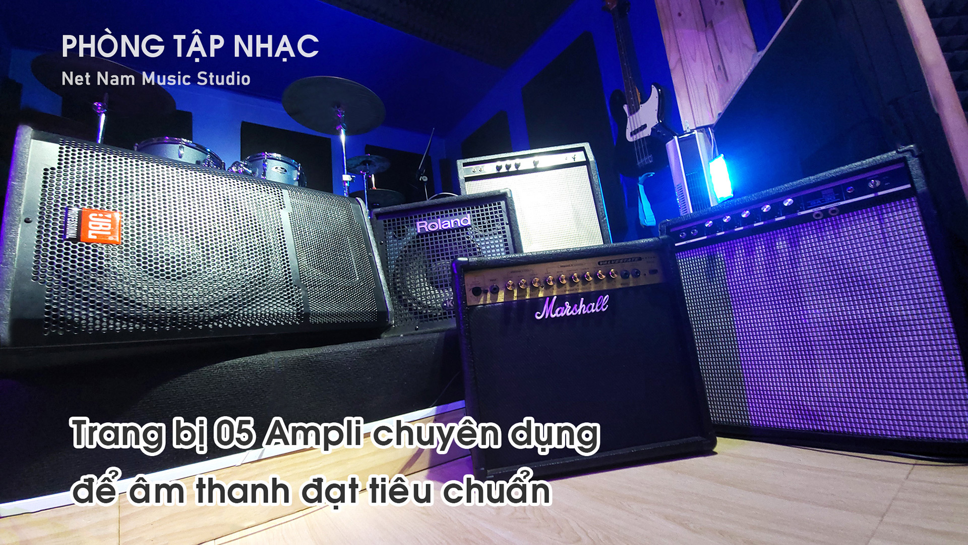 Phòng tập được cách âm tốt và trang bị đầy đủ các nhạc cụ cần thiết để phục vụ cho band nhạc tập luyện.